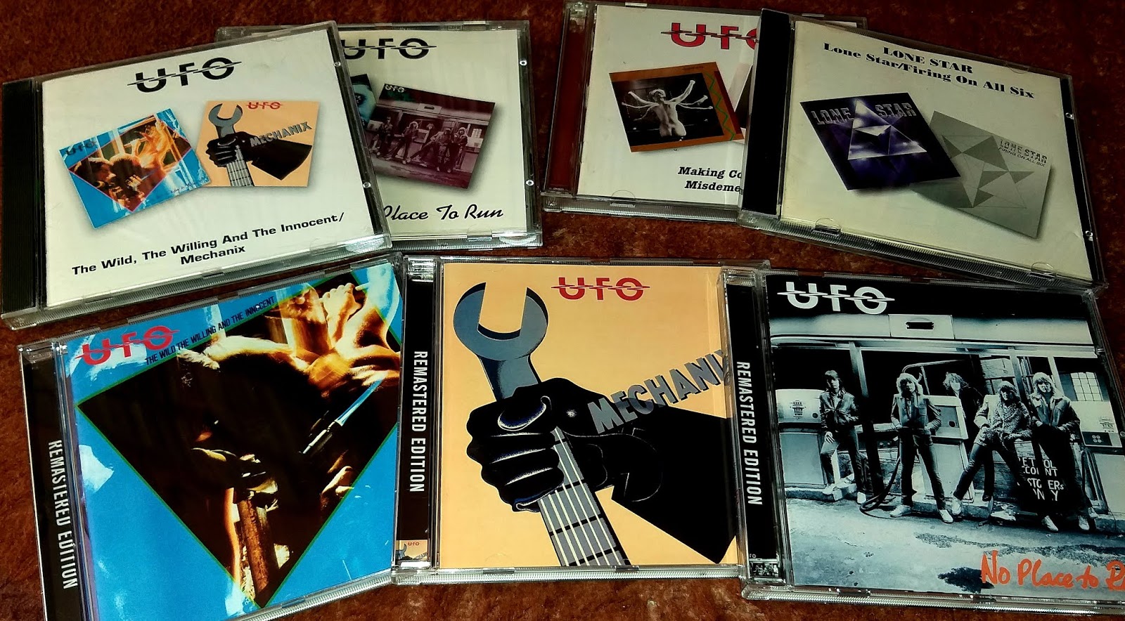 Lone Star wydali dwie płyty + pozostawili tyciu materiału "śmieciowego", do tego po latach opublikowano jeszcze spleciony z paprochów trzeci album. Słabiutki, więc nie zawracajmy nim sobie głowy. Liczą się główne dwa pierwsze. A szczególnie pierwszy, wydany w 1976 roku. Tutaj uznanie zdobyła art-rockowa, rozbudowana przeróbka Beatles'owskiego "She Said, She Said", lecz były na nim rzeczy jeszcze lepsze. M.in. natchnione "Lonely Soldier" (uwielbiam!) czy synth-prog'rockowe "Spaceships". Aż niewiarygodne, że tak ambitna muzyka była niegdyś młodzieżową. Posłuchałem jej właśnie po dłuższej rozłące, i wciąż padam do jej stóp. Jakiż to przeuroczy hard rock z kosmicznym posmakiem. Stanowcza gitara Chapmana wchodziła tu w interakcje z przestrzennymi partiami klawiszowymi, a nierzadko z typowymi dla drugiej połowy lat 70-tych syntezatorami. Drugim gitarzystą był tu równie dobry Tony Smith. Tak więc, mamy klasowego rocka, szczyptę kosmosu, a przede wszystkim maestrię umiejętności i kompozycyjnego smaku. To twórczość z czasów, kiedy nie realizowano łatwizną na domowych komputerkach, lecz każdy dźwięk gruntownie analizowano i przetwarzano, zanim ten trafił na taśmę produkcyjną. I żadna z tego masówa, byśmy się dobrze zrozumieli. Dbałość o szczegóły feeryczna. Słychać to także na ustępującej debiutowi "dwójce" - wydanej rok później. Mam oba te albumy na jednym cedeku. W 1993 roku tak postanowiła angielska oficyna BGO Records. W podobnym szlifie opublikowała ona również kilka albumów UFO. Cóż, nazbyt oszczędnie, cykl 2 LP na 1 CD, ale były to czasy, kiedy wszyscy narzekali na ceny kompaktów, więc wytwórnie wychodziły naprzeciw masowym oczekiwaniom. Tego typu edycje ograbiały oko z przyjemności, gdyż do absolutnego lilipuctwa miniaturyzowano okładki oryginalnych płyt. Po czasie wszystko wróciło do gustowności, i ja też dokupiłem ponownie te same albumy UFO, tym razem już w zremasterowanych i estetyczniejszych reedycjach. Rzecz jasna, nie wyzbywając się starych. Szkoda, że jakoś w przypadku Lone Star ostała mi się tylko stara edycja.